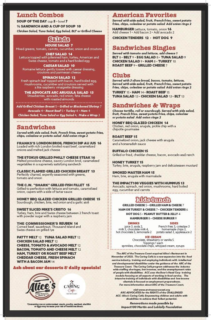 In addition to the items below, we offer specials made with fresh seasonal ingredients.